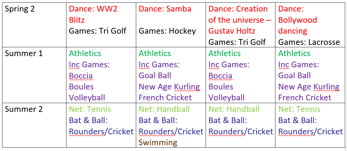 The NBJS PE curriculum has had a makeover during the 2022/23 year and is currently being rolled out. One of the biggest changes to our curriculum is the inclusion of inclusive sports: Torball, Boccia, Sit-down Volleyball and Goal ball. This is so we can hone our skills learnt across the different branches of PE (Dance, games, swimming, outdoor adventurous activity, athletics and gymnastics) in a different setting.